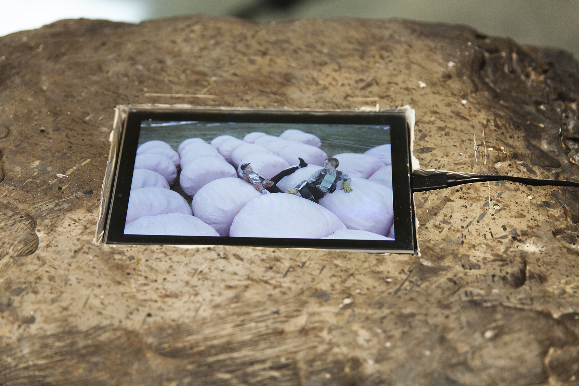 Bodies On A Rock includes moving images and sculptures and assemblages developed and made during an artists in residency program in the regional Icelandic town of Seydisfjordur. Amongst, the mountains, black waterfalls and green skies, Turner-Carrol lived and worked with the experimental art community at LungA School. The imagery developed play’s with ideas of nature, the body, perception and looking to existing colonial visions of land and the blueprints that lay within assumptions of reality.
